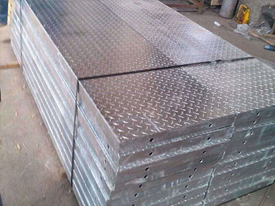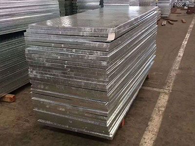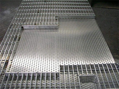 復合鋼格板 復合鋼格板是由具有一定橫跨能力的鋼格板和密封表面的花紋板組合而成的一種產品,它可任何一種型號的鋼格板和不同厚度的工化紋鋼板構成。 鋼格板的固定方法 可選用焊接和安裝夾緊固兩種方式。焊接的優點是長久固定,不會松脫,具體位置在鋼格板的每個角一根扁鋼上,焊縫長不小于20mm,高不小于3mm的角焊。安裝夾的優點是破壞熱浸鋅層及拆卸方便,每塊板至少需要4套安裝夾,安裝夾的使用數量隨著板長度的增加而增加中。安全的方法是不用下夾,直接將螺釘頭焊在梁上,保證鋼格板不會因安裝夾松脫而從梁上滑落。