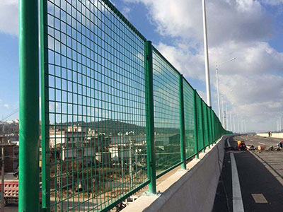 橋梁防拋網(橋梁隔離柵)采用Q235低碳鋼絲或鋼板網,焊接而成。可以采用電鍍、熱鍍、噴塑、浸塑等方式進行不腐處理。橋梁防拋網作為高速公路橋梁護欄產品,具有不腐、不老化、不怕曬、耐候等特點。