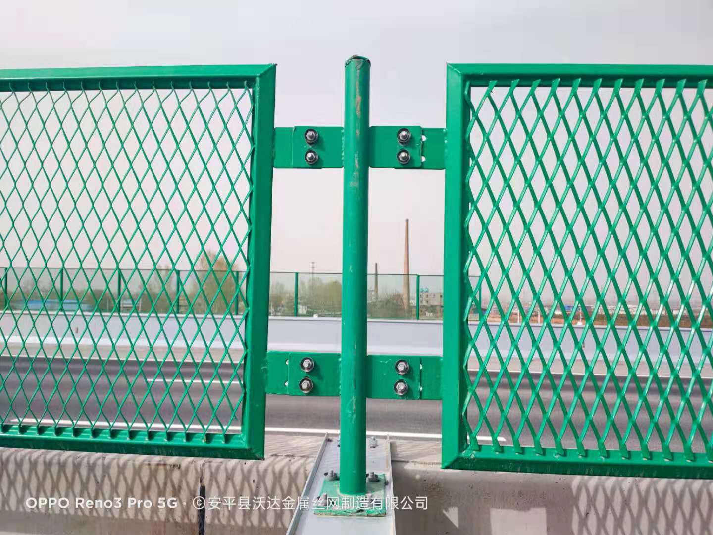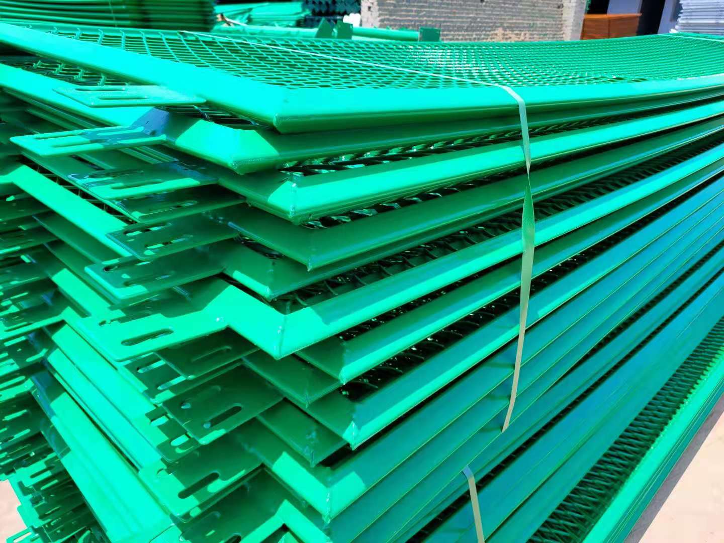 高速公路防眩網材料要求:采用鋼板網、異型管、邊耳、圓管焊接而成,顏色為果綠色,色號見RAL,色卡RAL6029每根立柱迎車方向貼40x180mm的類黃色反光膜,豎向粘貼,反光膜上部距立柱項部20cm。