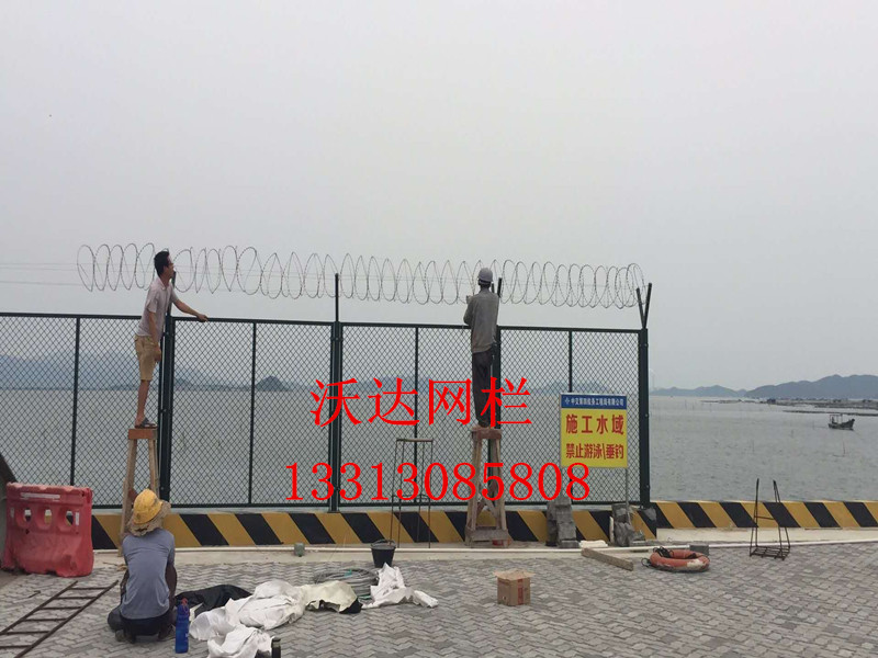 碼頭Y型柱鋼網墻隔離柵建設于碼頭水源邊,網墻內側或頂部加裝蛇腹形316不銹鋼刀刺網,形成一道高不可攀、難以逾越的隔離障礙。