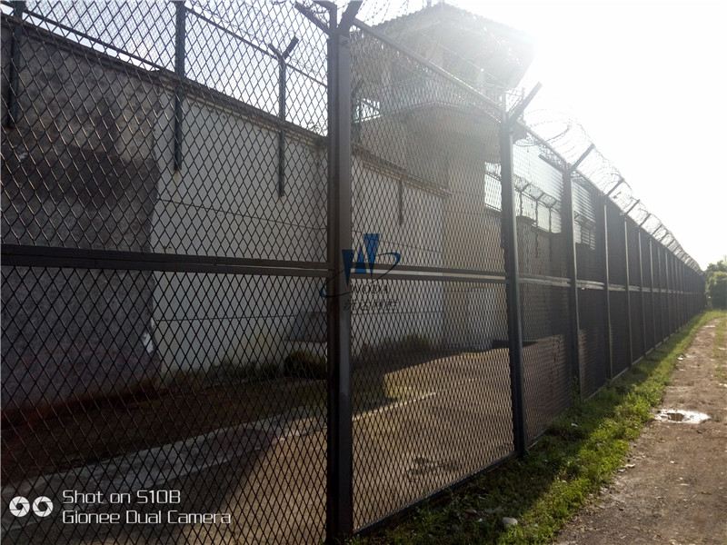 密紋型防護(hù)網(wǎng)是由鋼絲焊接成特別小孔的網(wǎng)片,手指伸不進(jìn)去,網(wǎng)絲一般為4mm,網(wǎng)孔一般為12.5*100mm等,能有效防止犯人攀爬。