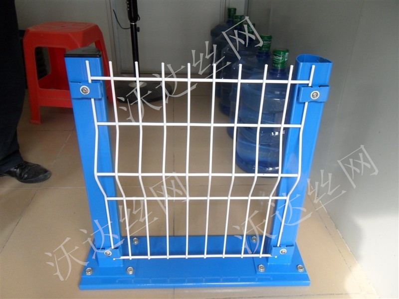 防護網片采用熱鍍鋅鋼絲電阻焊接而成,熱鍍鋅鋼絲鋅量不少于120g/㎡,圍欄網片展開尺寸為2607*2275mm,垂直段為1900mm,傾斜段為707mm,均勻排布五道加強槽,網孔為50*200mm,絲徑靜電噴涂前為φ4mm/φ4.5mm/φ5mm鍍鋅鋼絲焊接片網組成