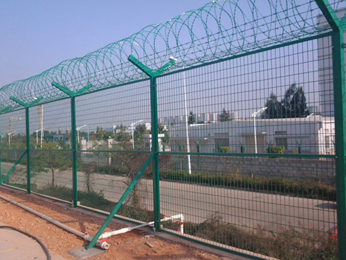 Y型立柱防護(hù)網(wǎng)由于在頂端使用V型支架而得名;近些年來通常在機(jī)場、監(jiān)獄、軍事重地等地使用,為了更好的提高防護(hù)性能,都會在網(wǎng)片中添加加強(qiáng)型焊接網(wǎng)片以及防盜連接裝置,V型支架則是為了放置刀片刺繩,在頂端安裝刀片刺繩可防止不法人員攀登,還可以通電防護(hù)性能更強(qiáng),不過通電請作出提示,以免出現(xiàn)意外事故。