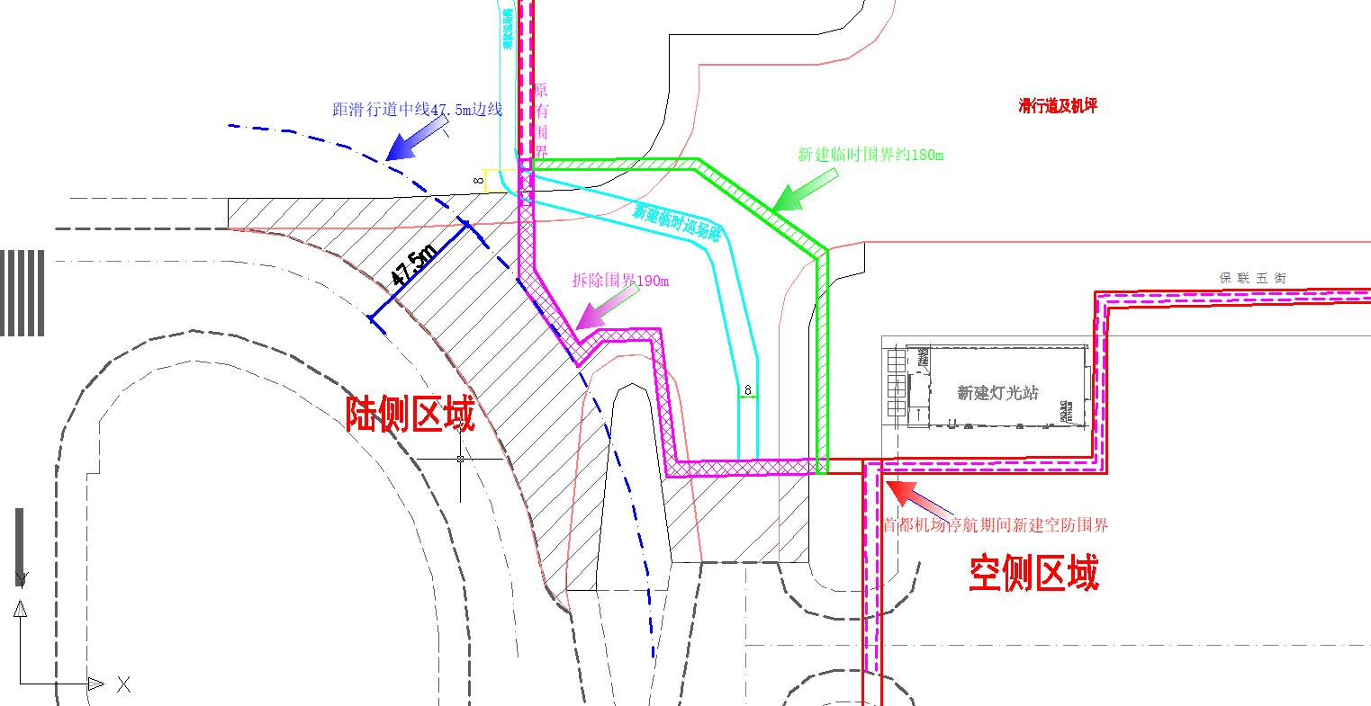 2、新建臨時(shí)圍界圍欄網(wǎng)為非空防圍界,經(jīng)機(jī)場(chǎng)驗(yàn)收合格后,準(zhǔn)許拆除與新建臨時(shí)圍界并行的原圍界,具體位置見(jiàn)附件一中紅色所示部分。