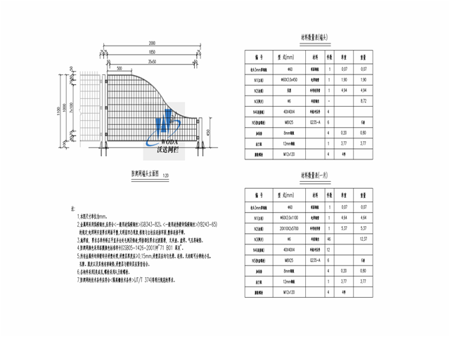 1、金屬網(wǎng)采用低噴鋼絲,應(yīng)符合<一般用途低或鋼絲>(GB343-82).<一般用途熱鍍鋅低碳鋼絲>(YB243-65)的規(guī)定;電焊網(wǎng)安裝要求網(wǎng)面平堂,無明顯四凸現(xiàn)象,框架與立柱應(yīng)連接牢固,整體連接平質(zhì)。