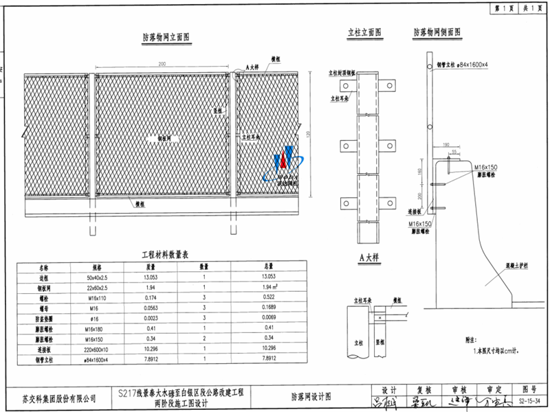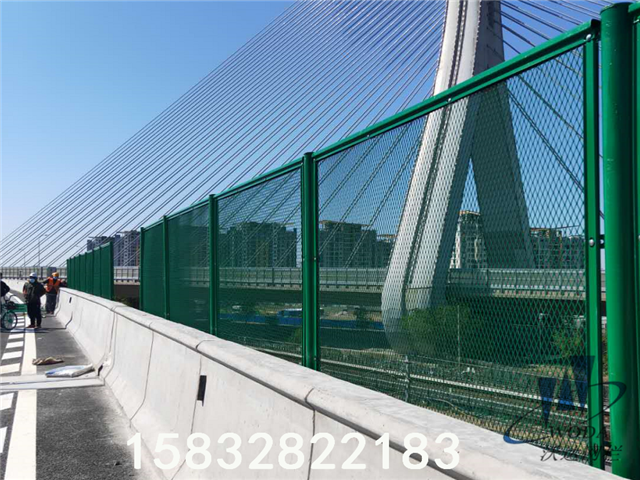 1、橋梁防落物網設置在下穿包蘭鐵路的橋梁護欄上,防落物網的網片采用鋼板網的形式,網片規格為22x60x2.5mm,防落網通過膨脹螺栓固定在橋梁護欄上。防落物網防腐要求與防眩網的防腐標準一致。