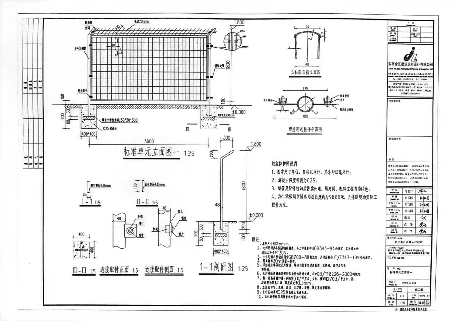 7、第一層熱漫鍍鋅量:網(wǎng)片90克/平方米。立柱、橫梁等270克 平方米;第二層涂塑為聚氧乙烯,厚度應(yīng)大千0.3mm.