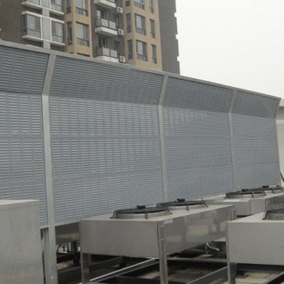 冷卻塔聲屏障完全采用金屬制作,不但防雨、防曬、防火,而且表面用聚酯塑粉做了防腐處理,大大的增加了其使用壽命。根據噪音的傳播特性,遇到障礙物發生折射、繞射的特點,我們在安裝冷卻塔聲屏障時的安裝方案尤為重要。冷卻塔聲屏障不同于路邊的隔音墻,原因在于冷卻塔噪音頻譜特性屬于中低頻噪音,音量分貝數值70以下。中低頻噪音穿透能力很強,遇障礙物衰減量很低,所以好的隔音和吸音材料是必不可少的,不可隨便用公路聲屏障的隔音板拿來亂用。消除噪音最好的方式是把噪音用一個密閉的空間密封起來,不讓噪音跑出去。所以冷卻塔聲屏障四周的嚴密性是起到消音的一大關鍵因素。有數據顯示,在冷卻塔聲屏障構件相連處, 如果縫隙特別大,噪音就會泄露出去,泄露面積占到安裝面積的1%,降噪效果就會下降20分貝;如果占到10%,降噪效果就會損失30分貝的下降能力。