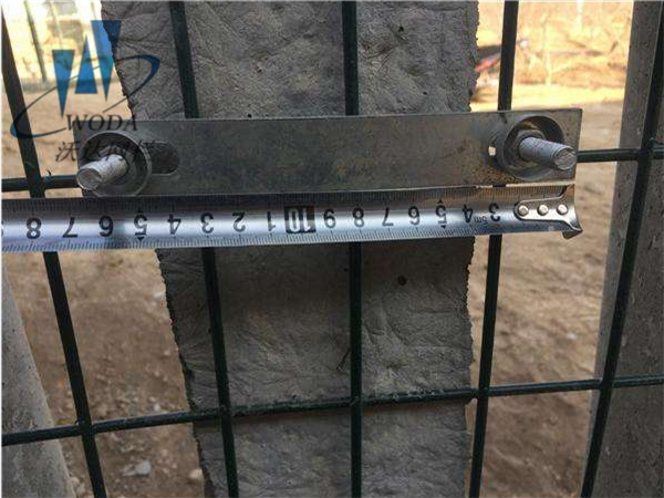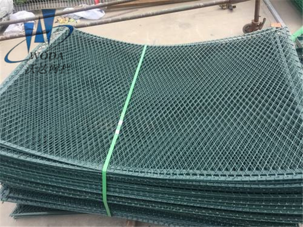 鋼板網樣式加密金屬網片隔離柵網格采用菱形方式排列,每網格25x25mm,網絲采用熱鍍鋅防護處理,直徑為2.2mm,鐵路加密網四周采用扁鋼鑲嵌加固,扁鋼為3mmx25mm。同時加密網片的長度與混凝土防護柵欄單元長度一致,安裝時采用U型抱箍固定在水泥防護柵欄欄片上,鐵路加密金屬網片采用鍍鋅處理后表層靜電噴涂處理。