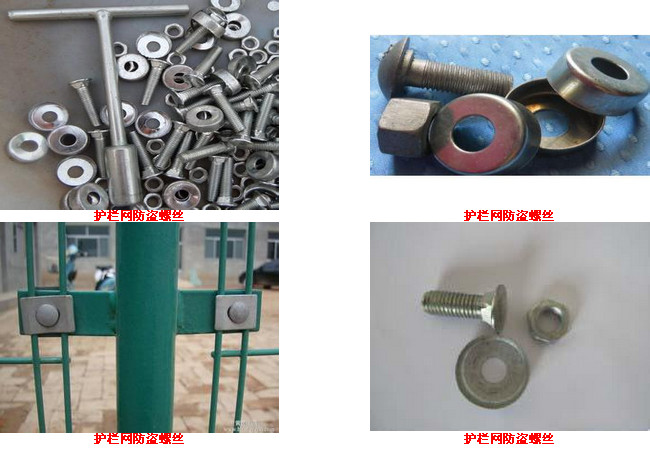 高速隔離柵網主要由防盜螺栓,螺母,方形墊片,防盜小碗組成。